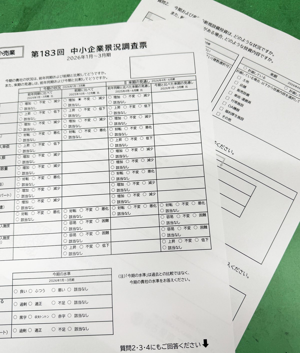 3ヶ月に1度 景気調査 と言う紙がやって来ます