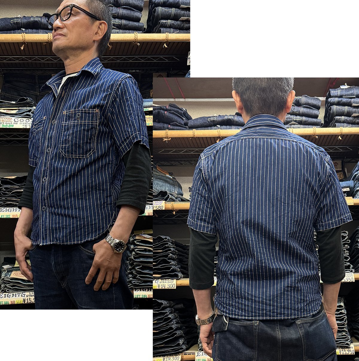 綿100%のウォバッシュストライプ生地を使用したヴィンテージ感溢れるワークシャツです。