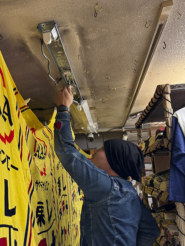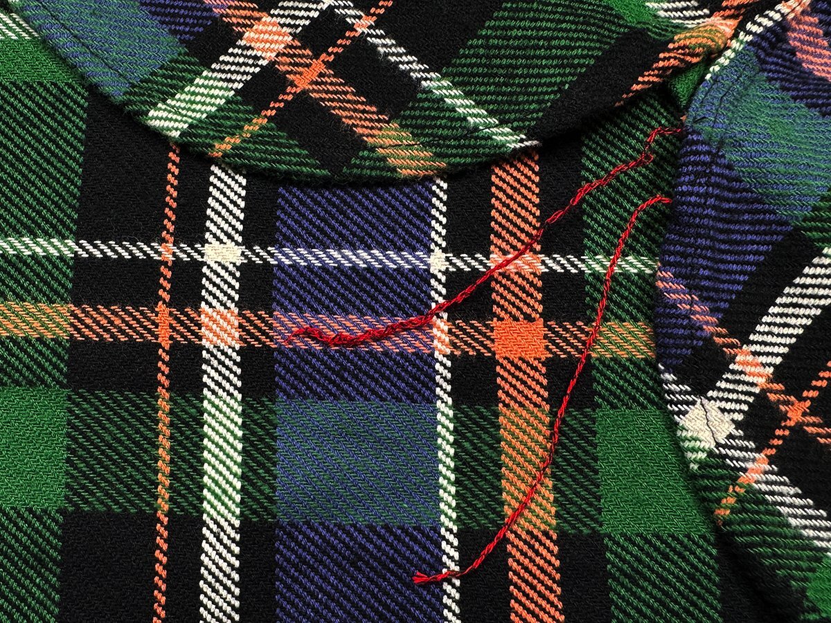 激しくついたアタリ、擦れ具合を表現するために、あえて生地や糸にダメージをあたえています