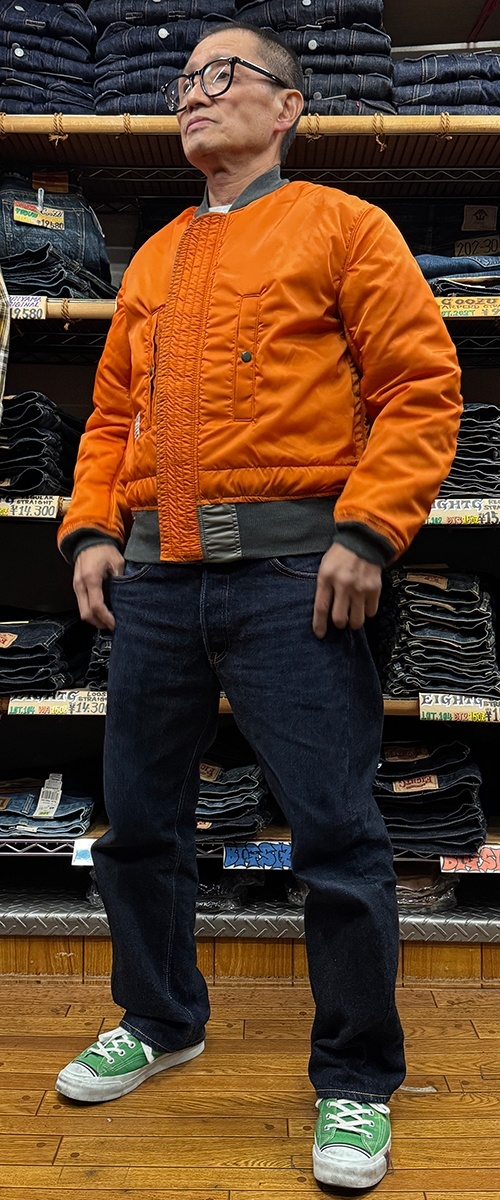 このMA-1は架空の想定で、タイトフィットにしてあり、その比類無き着心地とフィット感は、長さに渡ってジャケットを生産し続けてきたバズリクソンズの経験値が凝縮されていると言う想定を基に生産されたモデルです。