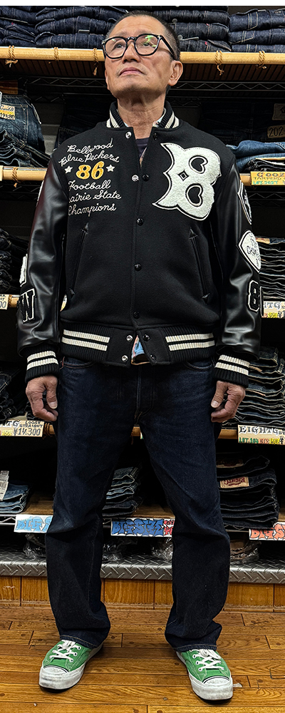 左胸にはチームを表す頭文字のシニール、自身のナンバーやチーム名、戦績が記された誇り高きジャケットに仕上げられています。