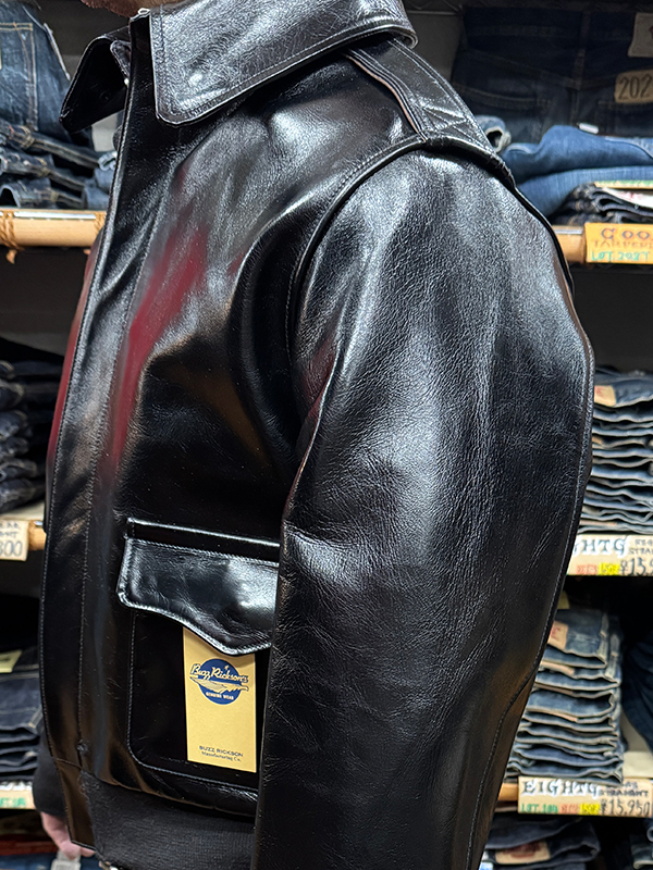 米陸軍航空隊は1942年の途中から"プロパティー・エアフォース"の表記を義務付けしたため、2枚のラベルを重ねて縫い付ける、いわゆる2段ラベルが特徴となっている。また、台襟の付いた大型の襟などラフウェア社らしい迫力のあるフォルムを持っている。