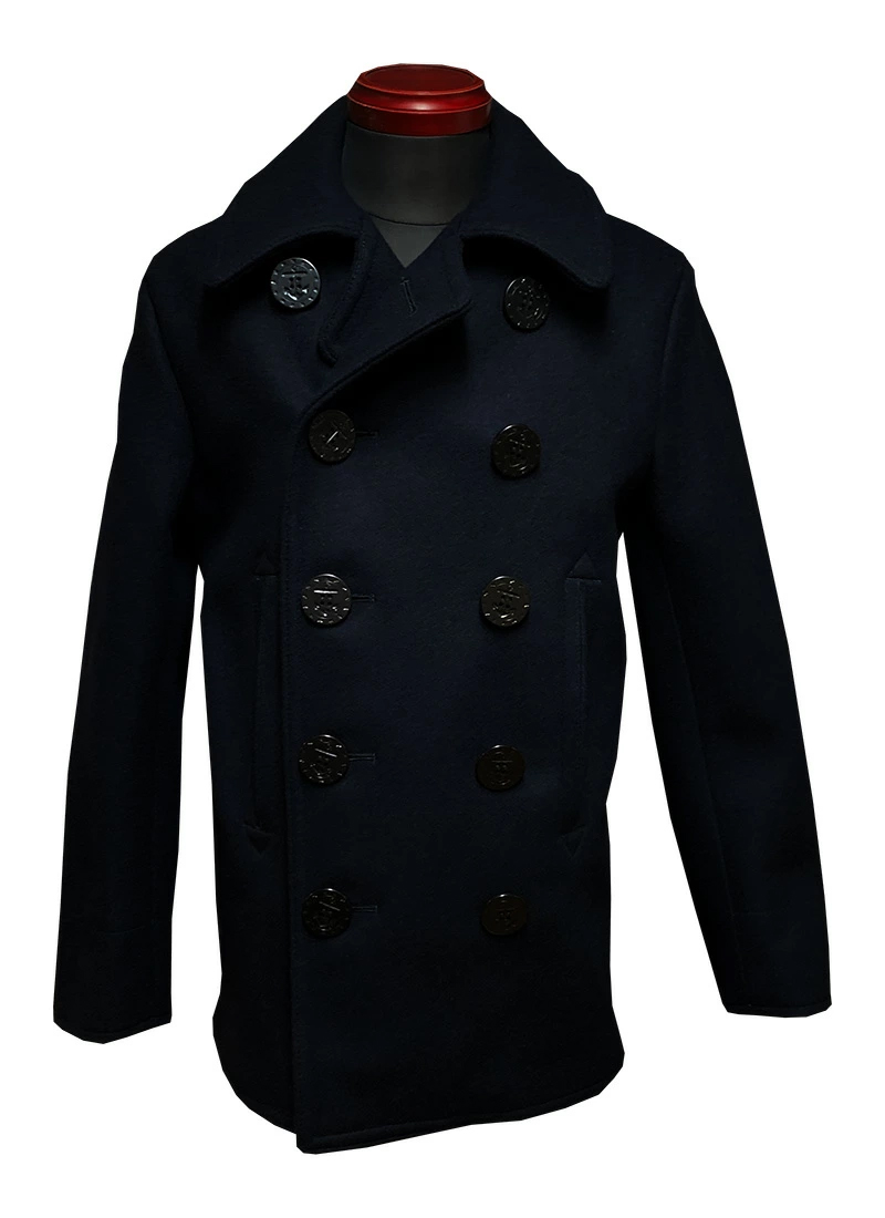名称は、オランダ語の"Pij jekker[ピーイエッケル]"を英語にした物で"Pij"が粗い毛織物、 "jekker"がジャケットから由来している。ヨーロッパ諸国でもピー・コート型のコートが 幾つかの軍で採用されてきたが、今回のこのピー・コートは、アメリカ海軍が下士官用コートとして 採用した1910年代のものである。1910年代のピー・コートの特徴は高密度の分厚い メルトンウール素材を用いていることと、アメリカの国章を表す13個の星が彫刻された アンカーボタンが付くことである。この13個の星は、1777年アメリカが合衆国として独立した 時の州の数が13であったことに由来している。アメリカ海軍がピー・コートを採用した正確な時期は 不明だが、第一次大戦当時の服装規定には既に下士官用コートとしてオーバーコートが掲載されていた。
