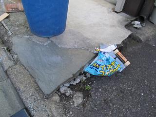 裏の駐車場の入り口をセメントで修繕しました