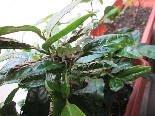 土の上では土色で、葉っぱの上では緑色になるんですね~
