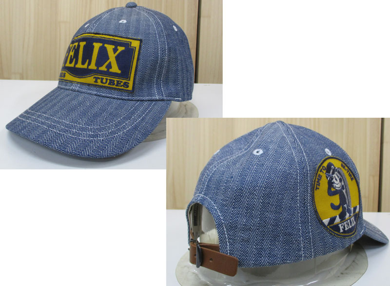 HERRINGBONE DENIM CAP FELIX THE CAT “FELIX TIRES & TUBES”