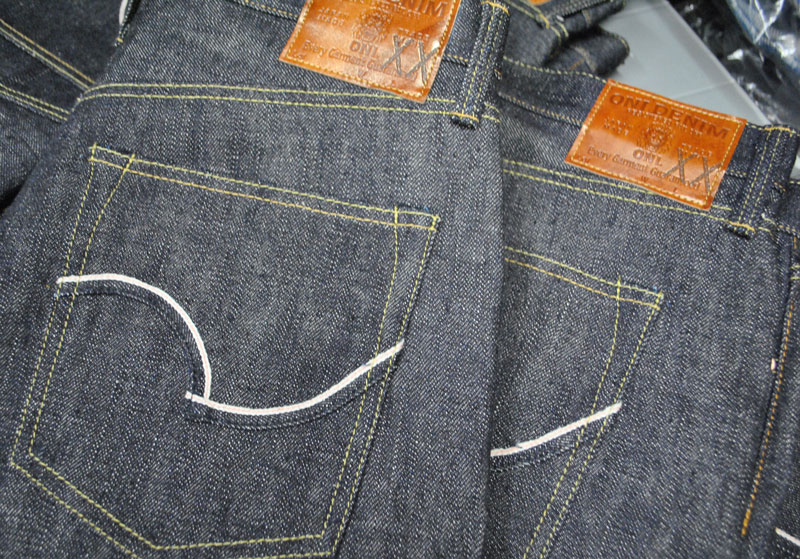 お馴染みの16.5ozXXデニムでバックポケット飾りステッチの代わりに和紙糸刺繍を施したアイテムを企画致しました。