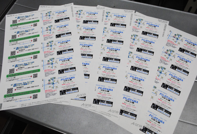 Jeans Shop FUJIYAMAショップカードを作って宣伝もしてもらいます