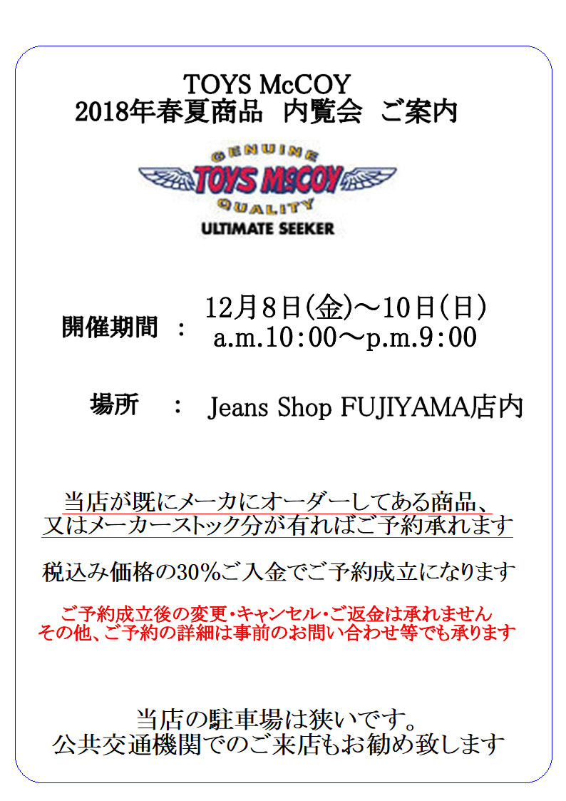 TOYS McCOY 2018年 春夏商品内覧会日程が決まりました