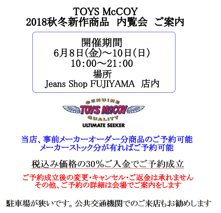 TOYS McCOY 2018年秋冬新商品 内覧会開催です