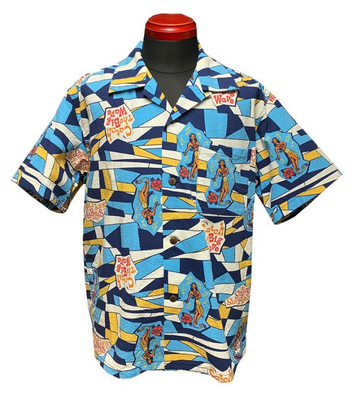 1970年代に京都で捺染され、日系の商社はトリプル・タイムス・カリフォルニア社によってアメリカ向けにシャツ用の生地として輸出されたデザインをレプリカしたアロハです。