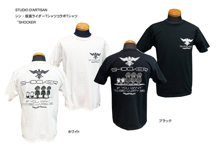 STUDIO D'ARTISAN(ステュディオ・ダルチザン)のシン・仮面ライダーTシャツコラボTシャツ“SHOCKER”柄 プリント半袖Tシャツ No SKR-004 です。