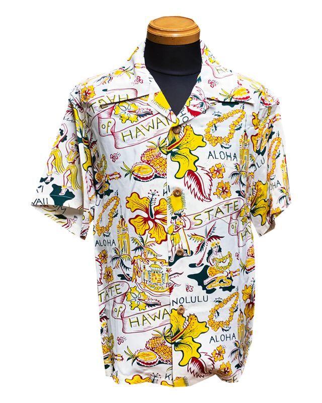 Sun Surf(サンサーフ)の半袖アロハ“HISTORY OF THE ISLANDS” SS39013 です