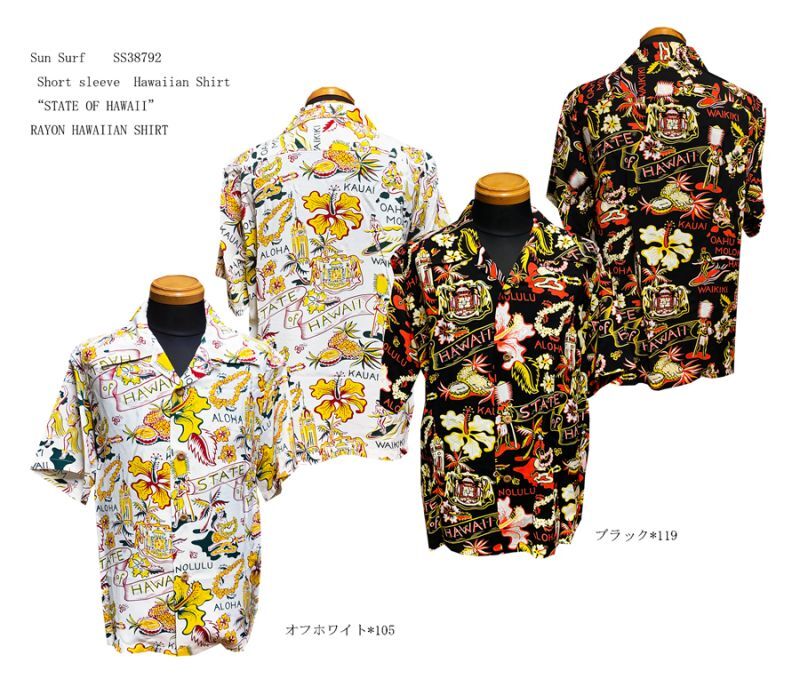 Sun Surf(サンサーフ)の半袖アロハ“STATE OF HAWAII” SS38792 です