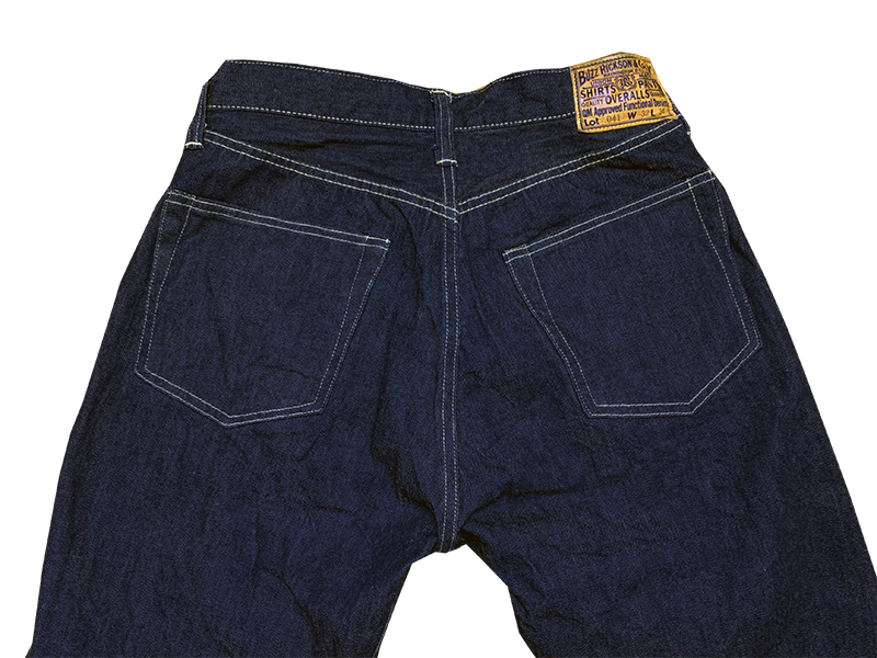 第二次世界大戦の戦時下において物資不足を解消するために統制を受けていた時期に生産されたGパンの「デニムウエストオーバーオールズ」とよばれていた時代のGパンのレプリカです。 それまでの時代のモデルで付いていたコインポケット口のリベットやヒップポケットのバータッが省略されたモデルのレプリカになります。