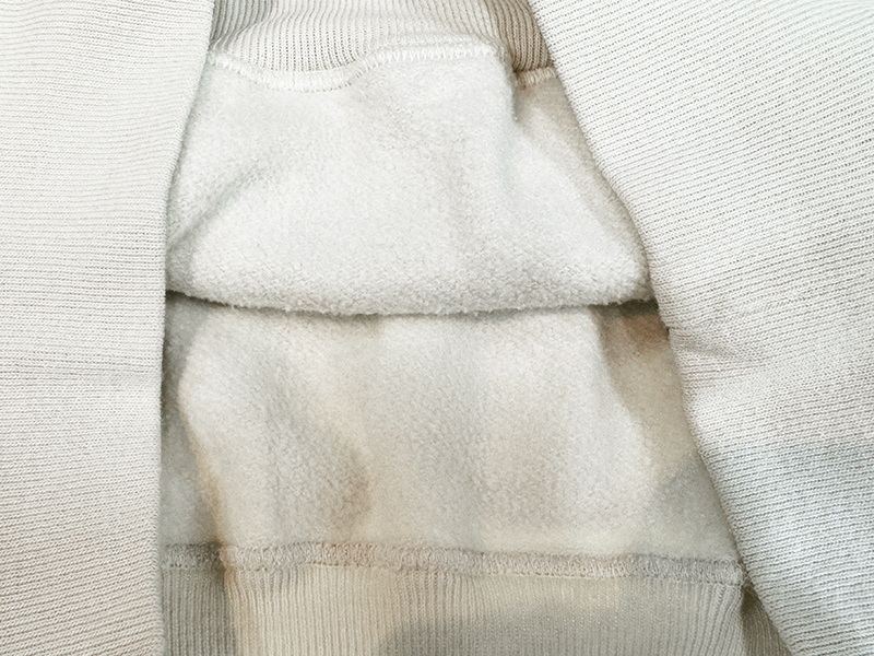 このシリーズのスウェットシャツの首回りもゆったりで、身幅も大きくなっています