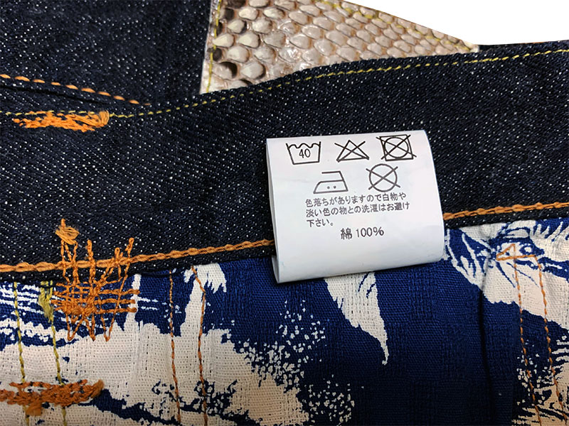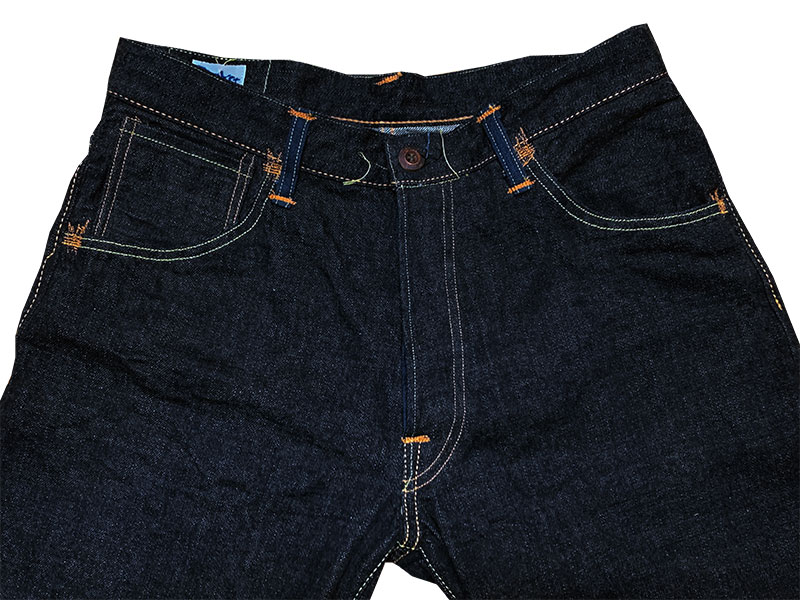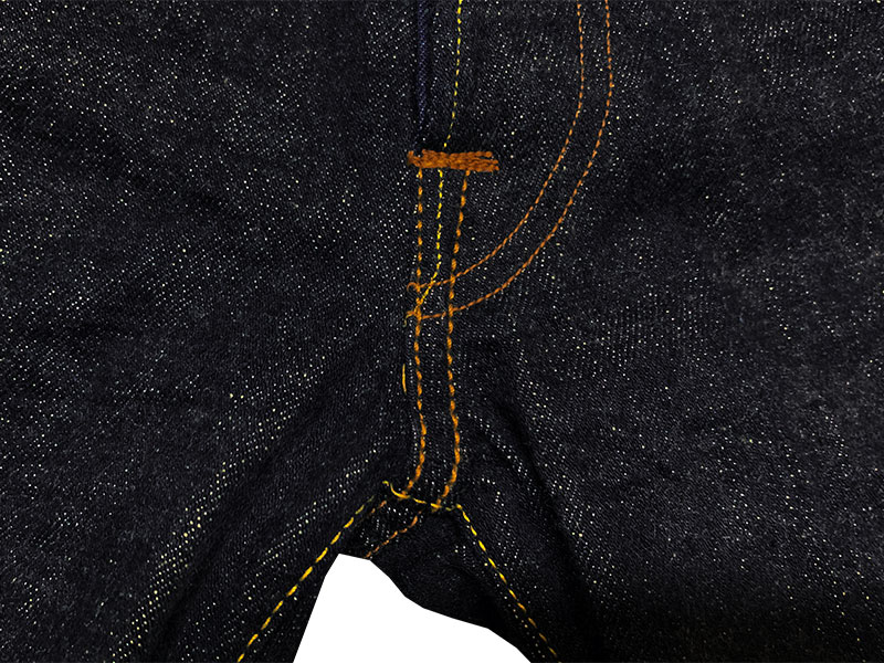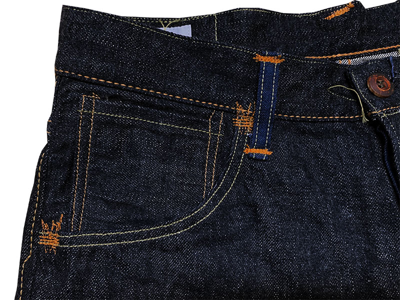 8-この大戦モデル用に完全別注したクランチ感の強い12ozのセルビッチデニムが使用されています。