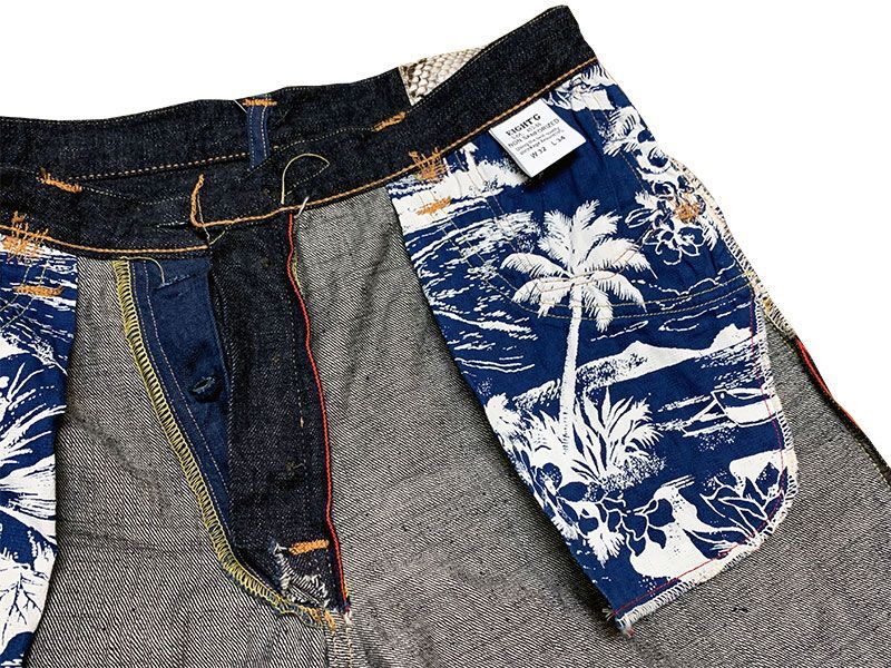 4-スレーキはドビー生地にインディゴ染めを施し、太平洋の深みのある色合いを表現。その上から真珠湾の背景を抜染プリントで描いたデザインです。