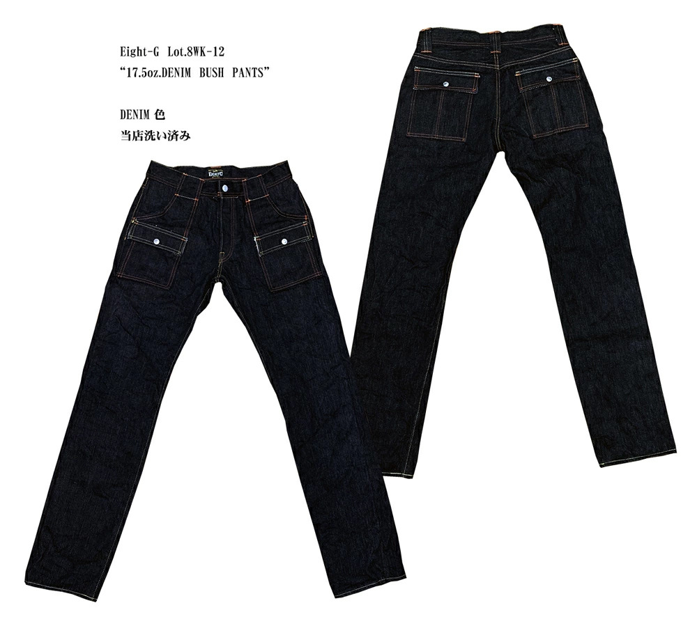 Eight-G(エイトG) Lot.8WK-12"17.5oz.DENIM BUSH PANTS" 17.5オンスセルビッチデニム 8WK-12-22 |