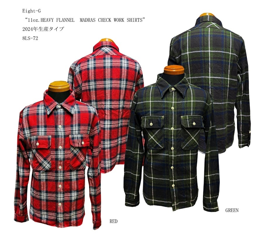 Eight-G(エイトG) "11oz.HEAVY FLANNEL MADRAS CHECK WORK SHIRTS" 2024年生産タイプ 8LS-72-24AW |